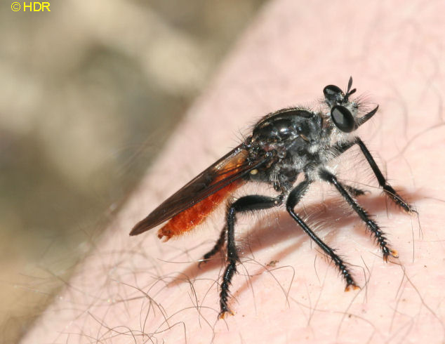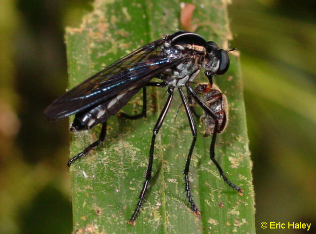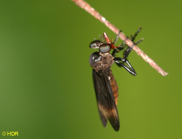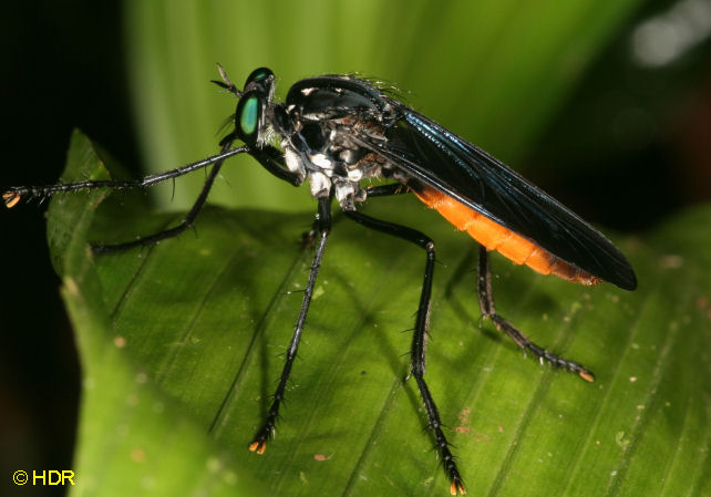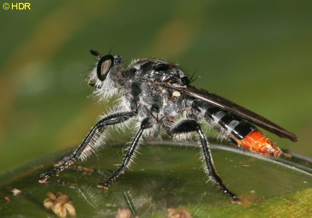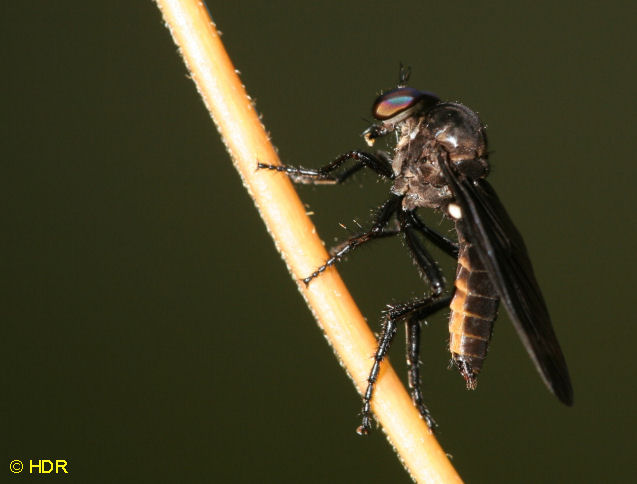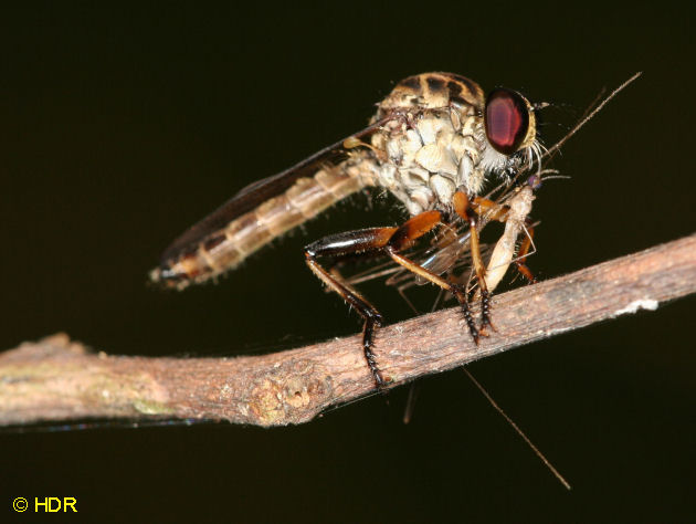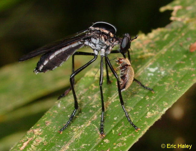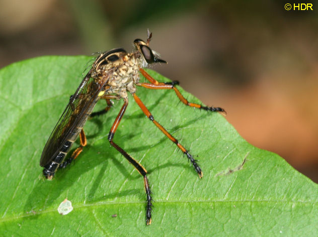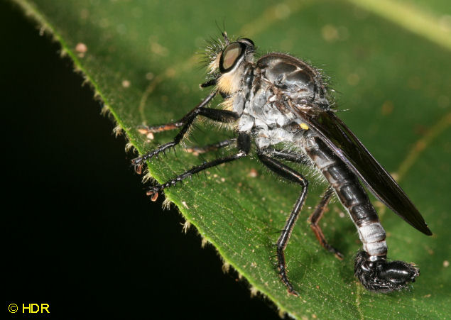 Shot 11. The same robber from the dorsum. Note the very smoky wings. There are quite a number of Diogmites in Central America and they have not been studied closely. Probably because they require close dissection of the genitalia in the US species for determination. |