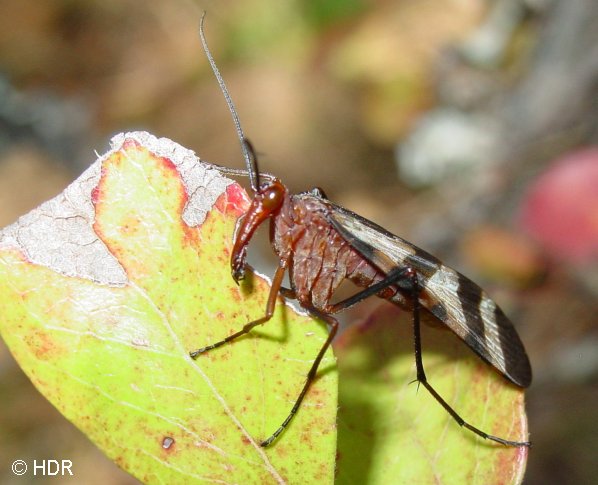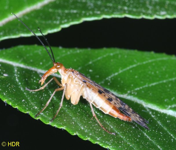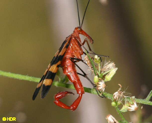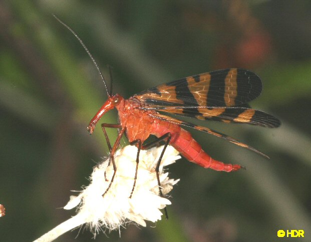 | A spring Scorpion with a much more patterned wing. Significantly smaller than the above fall species. Same long flashy antennae and beak. |