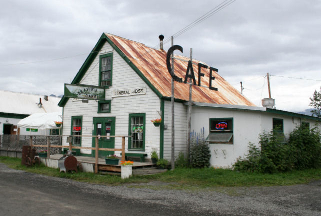 Inside the Seaview Café in Hope, Alaska, the décor is marine antique. Book shelves filled with mariner stories, fly tying instruction, whaling lore, field guides for salmon and, of course, Moby Dick. It appears to be a shack built a hundred years ago of painted pine plank, or fir or something indelibly woody. The menu is simple. The chowder is possibly the best I have ever tasted, with chunks of halibut in the white cream of corn and pepper. Alaskan beer allows me to think more clearly. And I think more clearly for awhile. The air has affected me as well. Everyone looks happier than we usually are allowed to be. For dessert, a salmonberry and rhubarb pie a la mode with homemade crust. Surely this is a rare pie anywhere. I could love a woman who can make this pie. Makes me forget the traffic jam of fishermen for the rest of the day. The mountains are hidden from me inside the café. We can see out on the decking where they are setting up for Hope nightlife: beer and dancing, I think it must be. It could be anywhere outside. The world is everything that is the case. Ah, Wittgenstein.